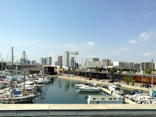 Zu Mittag habe ich im Hinterhof eines Hotelrestaurants auf der La Rambla gegessen. Die Mahlzeit war teuer, es war wenig auf dem Teller, die Qualität dagegen war sehr gut. Ich habe gegrillten Oktopus mit Zucchini-Spagetti auf Tomatenpesto gegessen. Derweil zeigten Straßenkünstler den anwesenden Touristen Ihre sportlichen Tänze und Saltos. Ich spazierte weiter zum alten Yachthafen und über die Rambla del mar. Es ist eine Brücke auf der man eine phantastische Aussicht in allen 4 Himmelsrichtungen hat Auf der anderen Seite befindet sich unter anderen das Einkaufszentrum Maremágnum und das Aquarium Barcelona. Ich hielt mich jedoch nicht lange dort auf. Die Sonne brannte zu sehr, und ich wollte bei den vielen Menschenmassen einfach nur wieder ins Hotel zurück. Sicherlich werde ich mir beim nächsten Mal mehr Zeit für diesen Hafen nehmen, der sich an die La Rambla anschließt. Und entweder gleich in der Früh oder später am Abend gegen 20:00 das Aquarium Barcelona besuchen. Ich spazierte auf der Moll d‘ Espanya zurück, suchte nach einem Bus, der mich zurück zur Plaza de Catalunya brachte. Von dort ging es mit dem anderen Bus zum Hotel zurück.